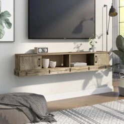 Bajwal Rustic 2 Door Floating TV Stand For TVs Up To 70″ Weathered Oak – HOMES: Inside + Out