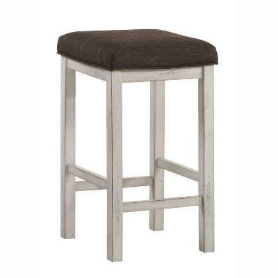 - Four backless stools with dark brown linen-like fabric