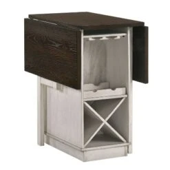 The ultimate in versatility, perfect for a compact space, this five-piece counter height dining set includes a drop-leaf design and backless stools. With stemware and wine bottle racks in the table base, this ingenious design keeps favored vintages close at hand. This eco-friendly frame is constructed from rubberwood, a tropical, solid wood taken from rubber plantations.