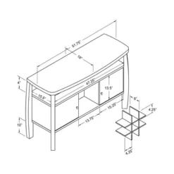 Built to showcase sophisticated Modern style, the Angla Bold Curved Dining Buffet by ioHOMES does that and more. Chrome pull accents open up to spacious cabinet space while the grid style wine rack showcases your vast collection of wine. The central shelf features a generous surface for stowing plates and bowls as the smooth rounded top displays spirits, décor and more. Bowed legs adds distinguished arching curvature and a Cappuccino finish elevates with deep brown tones.