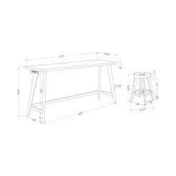 - Table: 36.25 in. H x 72 in. W x 20.13 in. D; Stool: 24.25 in. H x 21.75 in. W x 21.75 in. D