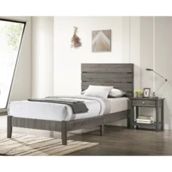 Derries Slatted Platform Bed Gray – HOMES: Inside + Out