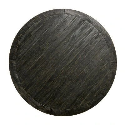Superior countryside elegance and beauty highlight this Rustic Farmhouse style round dining table. Crafted of solid wood in an antique black finish, it features a plank-style wood top highlighted by the textured wood graining. The sturdy pedestal base with X-cross supports and metal accents adds to its Rustic charm and gives this table a timeless look you’ll enjoy for years to come.