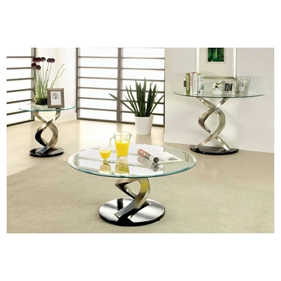 HOMES: Inside + Out Kelsi Modern Twisting Glass Top Satin Plated Sofa Table is an extraordinary piece on an ordinary day. The 8mm clear tempered glass oval table top is supported upon a statuesque satin plated swirl shaped metal post. This piece boasts a beautiful design with a contrasting bold colored solid base. The HOMES: Inside + Out Kelsi Modern Twisting Glass Top Satin Plated Sofa Table is complete with a sleek design ideal for dressing up a bare wall.