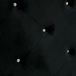 Give yourself the gift of ultimate luxury and comfort with this decadent Washington panel bed. A dual finish of black and white offers notable contrast. The shapely padded headboard, footboard, and sides all features a black glossy finish with glamorous mirrored accents. The Washington bed features a crown silhouette headboard upholstered in beautiful black velvet-like fabric upholstery with button tufting and regal post finials. This exquisite bed creates a definitive focal point in any stylish room.